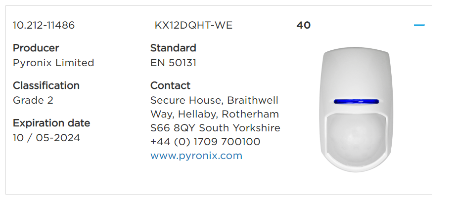 EN50131-1:2006+A1:2009 | EN50131-3:2009 | EN50131-6:2008 | EN50131-5-3:2005+A1:2008 | PD6662:2017