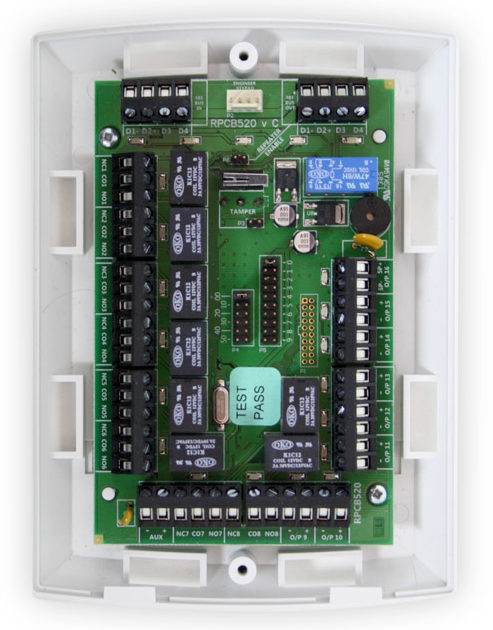 The 8R 8T is an output expansion module that allows you to add an extra 16 outputs to your system. These comprise of 8 relay outputs (NO or NC) and 8 transistorised outputs.
